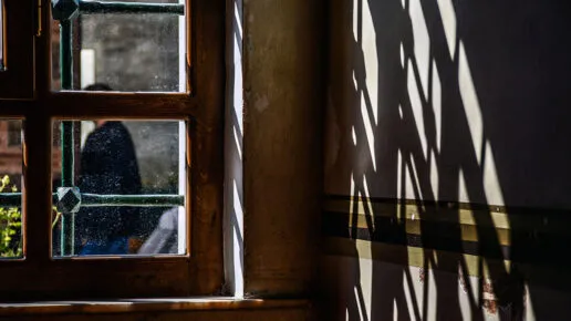 At home, Nafisa goes back to the window, draws the curtains shut, and moves into another room.